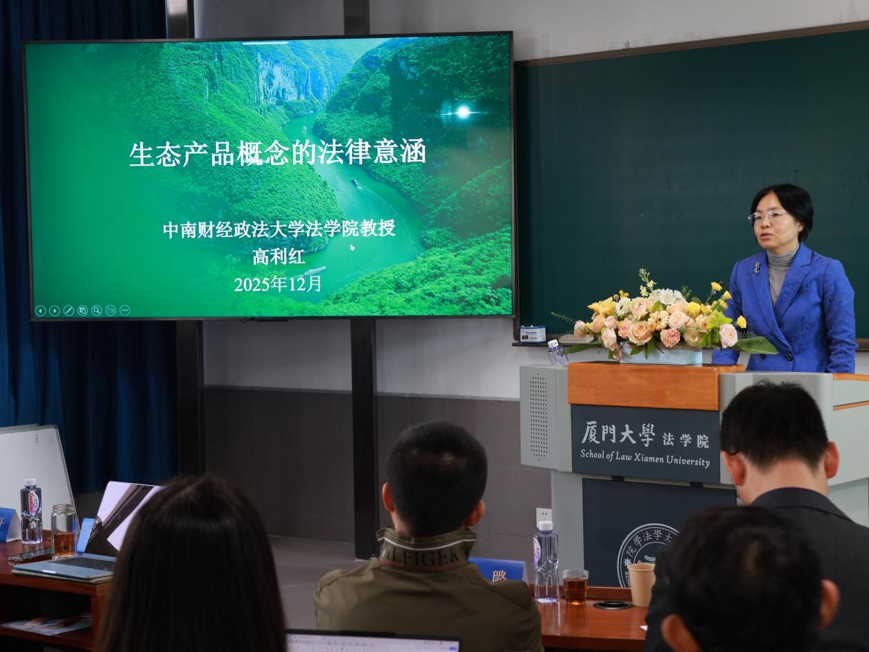 中国法学会环境资源法学研究会副会长、中南财经政法大学法学院高利红教授作题为《生态产品概念的法律意涵》的专题发言。她主张,生态环境法典应确立“生态优先”作为生态产品核心价值,准确界定的生态产品的含义,并按生态重要性将其分类规范。