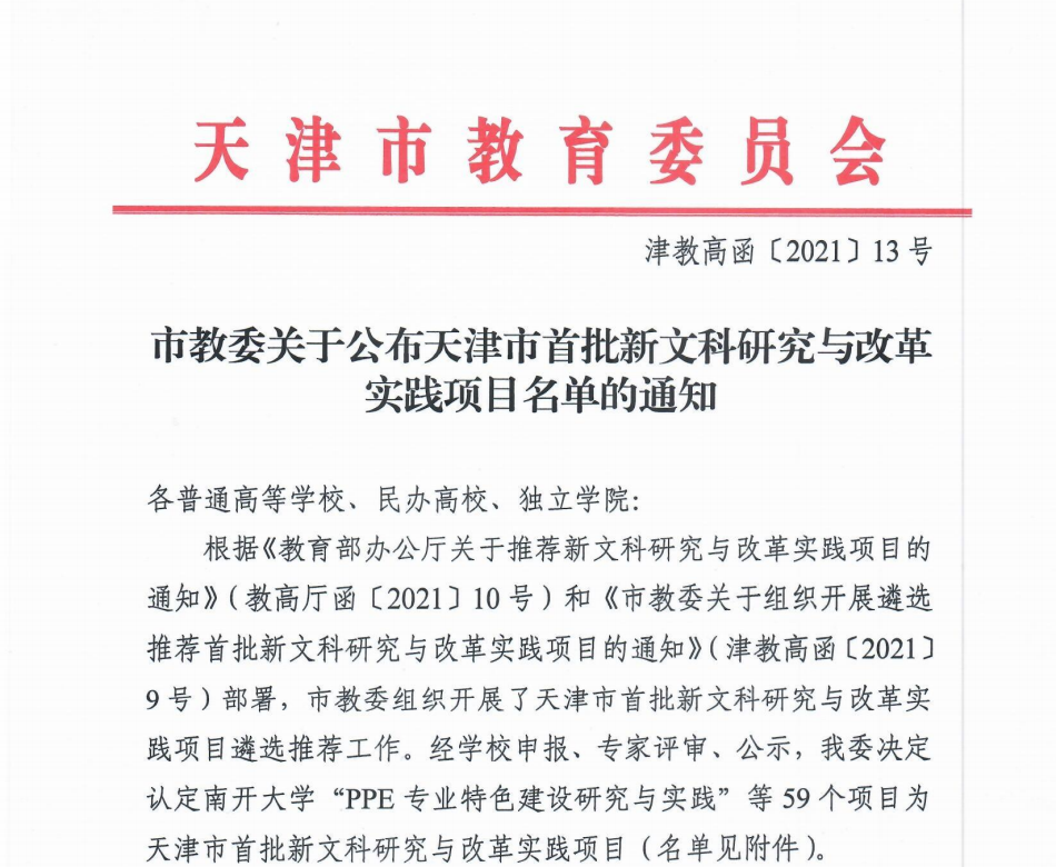 (通讯员 王文杰)近日,天津市教育委员会公布了天津市首批新文科研究与改革实践项目名单,我院获批2项课题,分别是法学院党委书记杨欢主持的“习近平法治思想’三进’的理论研究与实践探索”和国际法教研组组长吕斯轩老师主持的“虚拟现实技术下的法学教学方法创新与实践”。据悉,我校共获批4项天津市新文科研究与改革实践项目。